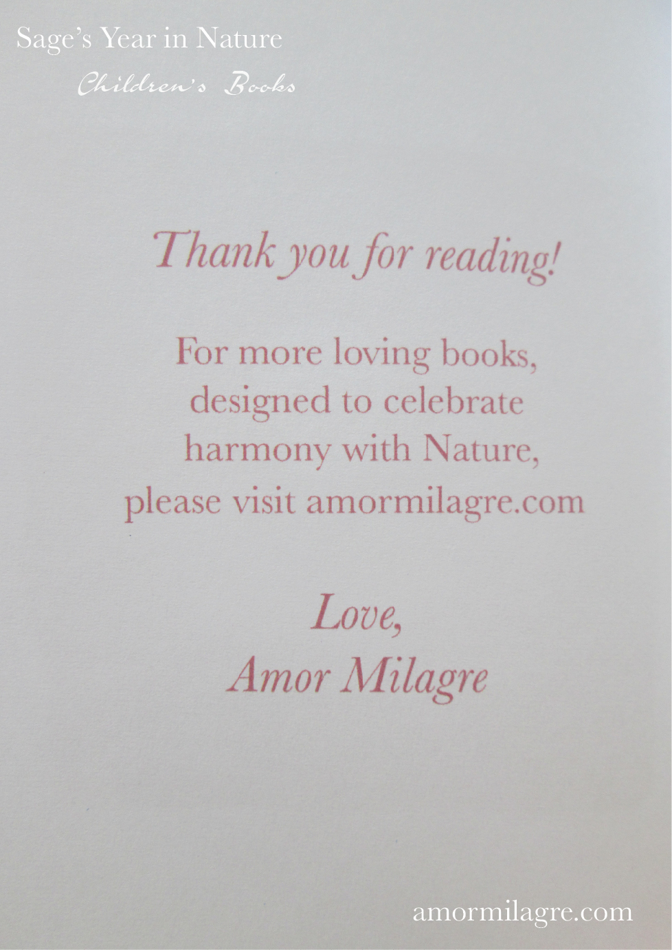 Amor Milagre Sage's Year in Nature Children's Book amormilagre.com