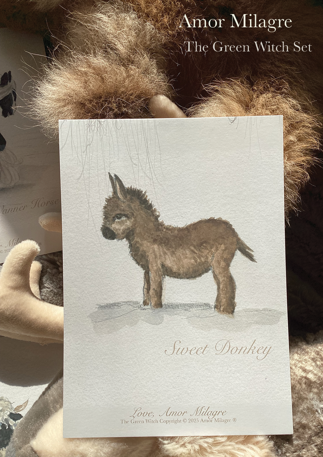 Amor Milagre The Green Witch Magical Baby Animals Book Illustration Watercolour Baby & Child Greeting Card Set, Sweet Brown Donkey