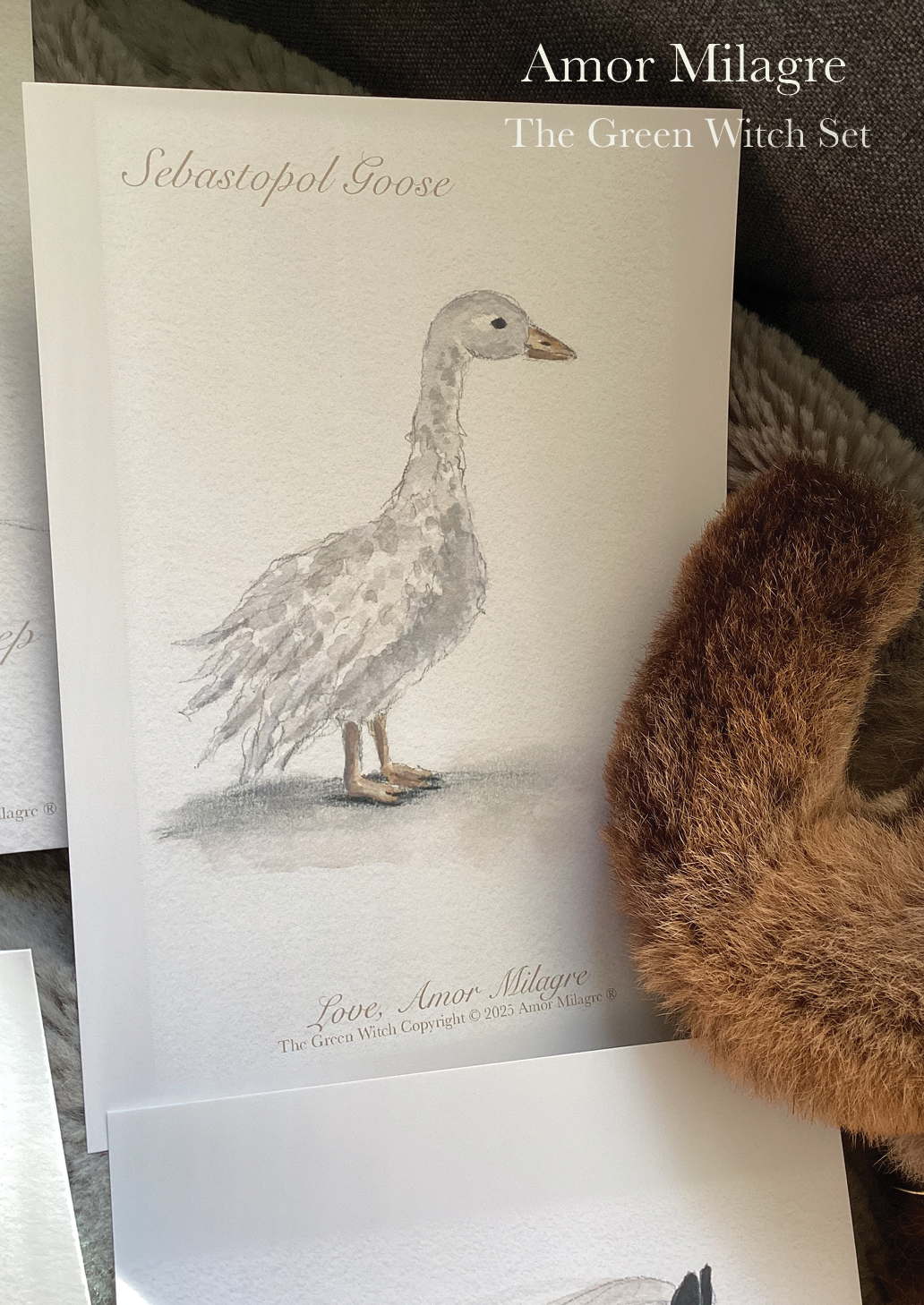 Amor Milagre The Green Witch Magical Baby Animals Book Illustration Watercolour Baby & Child Greeting Card Set, Sebastopol Goose