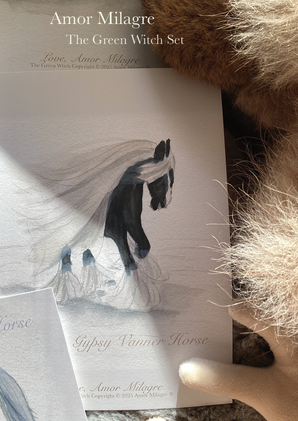 Amor Milagre The Green Witch Magical Baby Animals Book Illustration Watercolour Baby & Child Greeting Card Set, Gypsy Vanner Horse