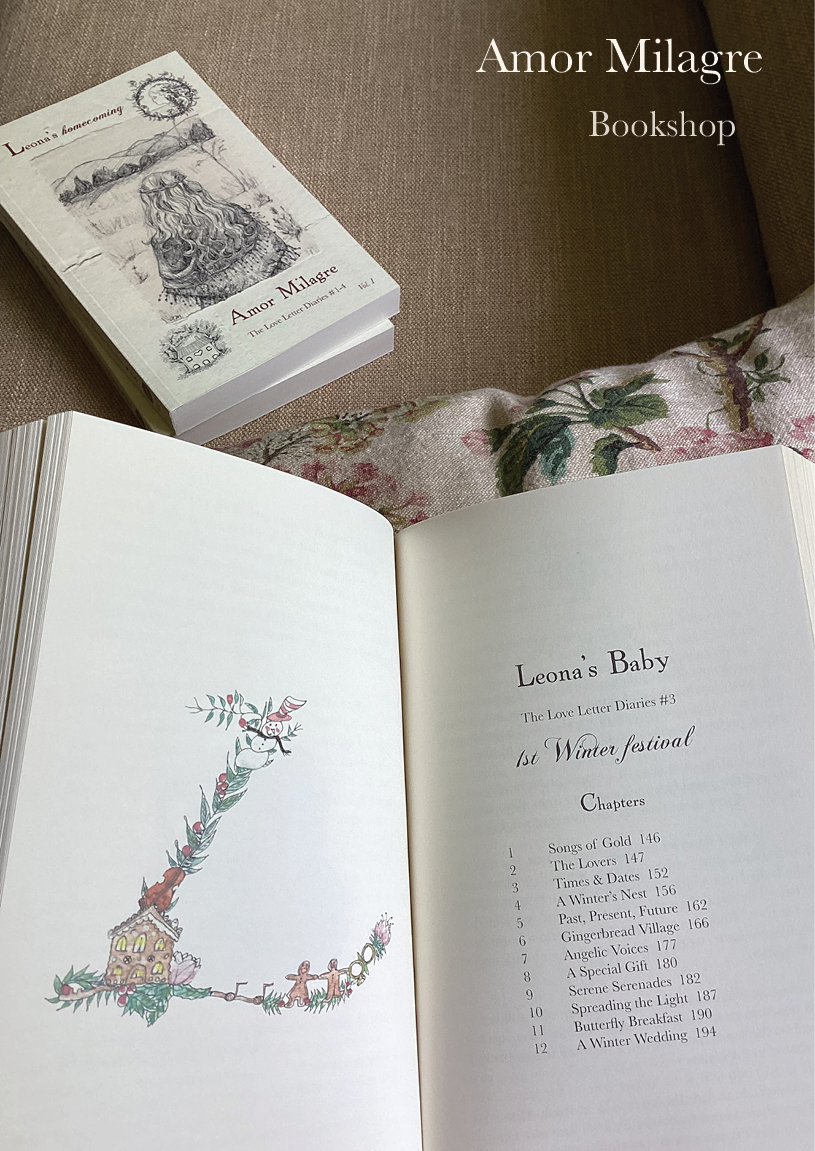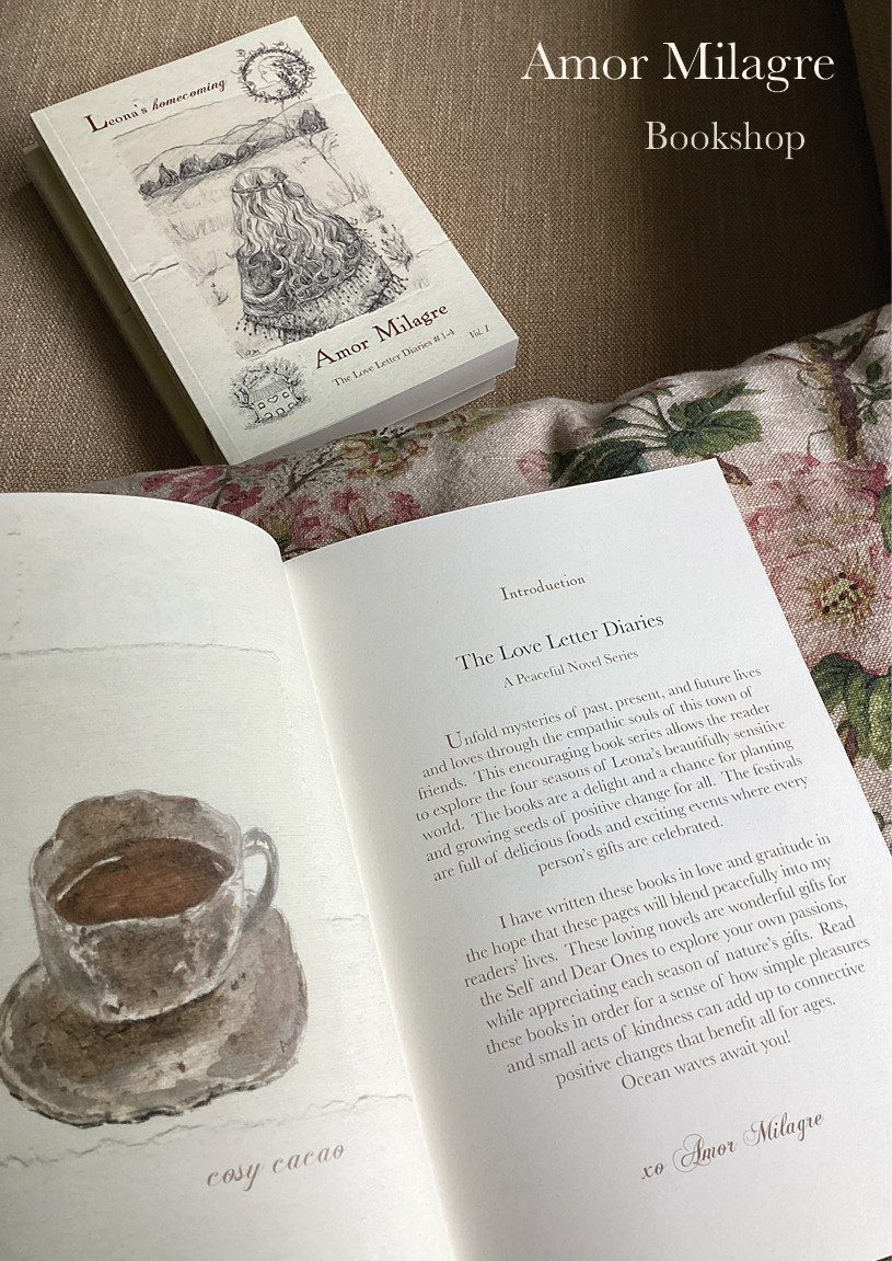 I am pleased to introduce the illustrated Vol. I of The Love Letter Diaries, Leona’s Homecoming. These darling books are my favourite. They are my heart. I hope they become a part of yours, too. So, if you like romance, peaceful living, gardening, art, seasonal holidays, delicious foods, love, mer-mysteries, and sweet families, then allow these life-long friends to invite you into their beautiful world. Hold them dear, and they will whisper amusing ideas for you to try as you write your own days.